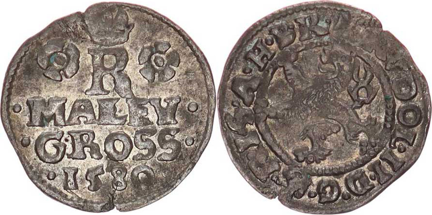 Malý groš 1580, Praha-Gebhart HN 5 0,831 g_dr. hr.