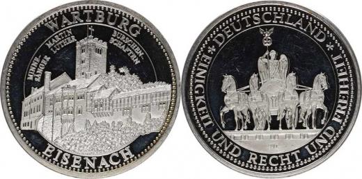 Eisenach - Wartburg, hradní komplex / Quadriga, opis: EINGKEIT UND..... Ag 999/1000 40 mm 20 g