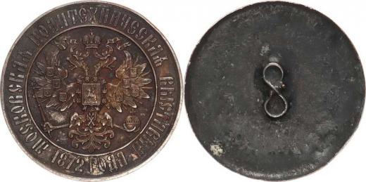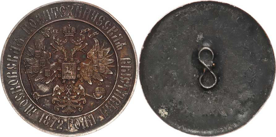 Alexandr II. - odznak, Moskevská polytechnická výstava 1872. Cars ký znak, opis Cu 45.8 mm_ ulomená jehlice