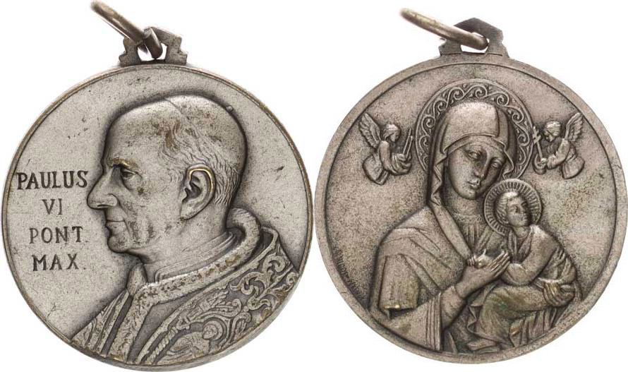 Paulus VI., poprsí zleva, nápis / Panna Maria Ustavičné pomoci - pontifikální medaile sign.: N.RICCI FIRENZE bronz postř. 30 mm ouško +závěs 13,98 g