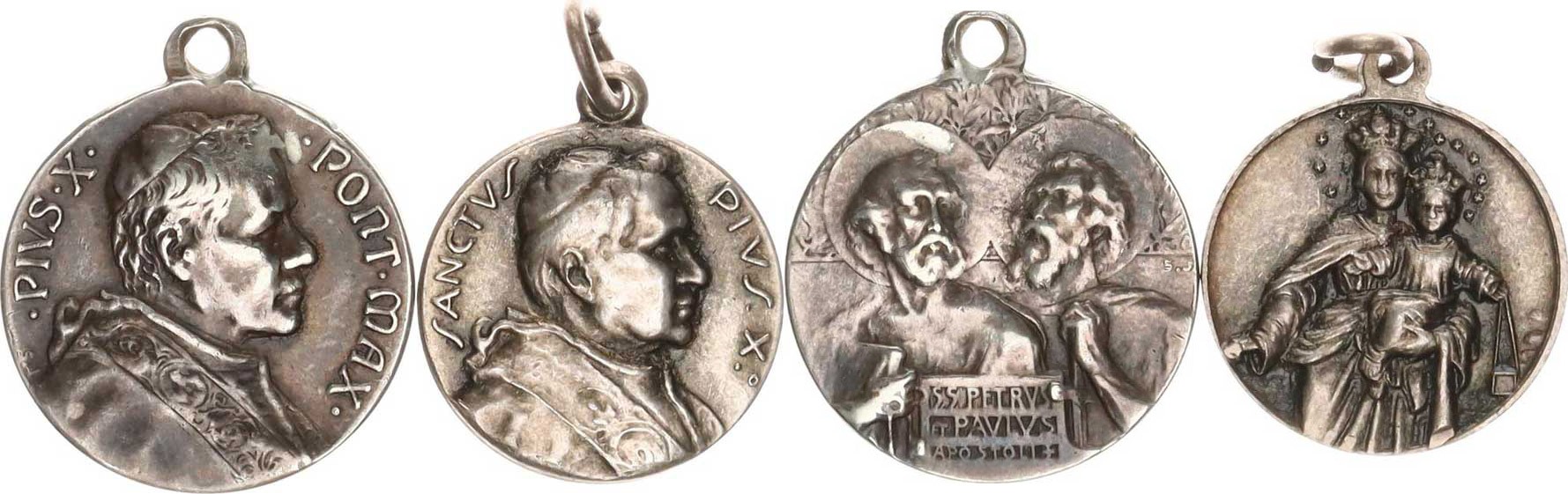 Pius XI., Pontifikální medaile s Petrem a Pavlem alpaka 18 mm 2/ Pontifikální medaile s Pannou Marii Škapulířovou alpaka 1 6 mm 2 ks