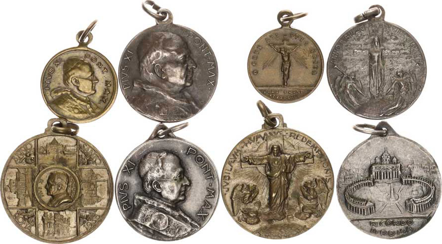 Pius XI., - Konvolut 4 ks různých - Medaile na Svatý rok 1933-34 alpaka 24, 22, 21, 16 mm