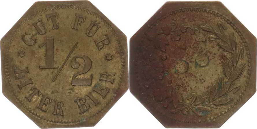 1/2 Liter Bier - Gut für / V otevřeném věnci s chmele a ječmene v yražená písmena SS mosaz. osmihran 21 mm_oxyd. v Rv.