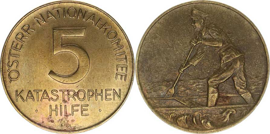 "5 Österr. Nationalkomitee Katastrophen Hilfe" b.l. (1954) mosaz 27 mm