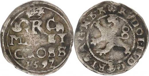 Malý groš 1592, K.Hora-Šatný HN 1b/7a, bez teček 1,128 g