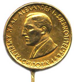 Chudobín (okr. Olomouc) - Rytířský král Alexander I. - Sjednotite l - 1.6. 36. Hlava zleva, opis (chrám sv. Cyrila a Metoděje) sign.: LENHART mosaz. plech 20 mm jehlice