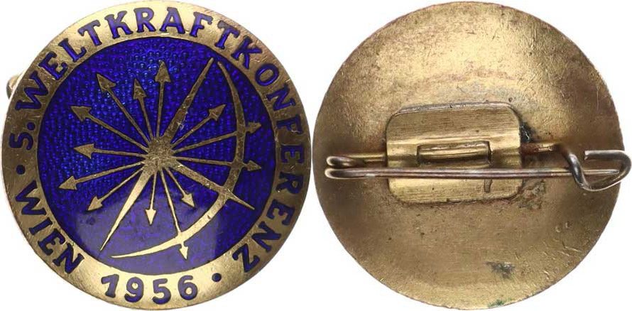 Vídeň - "S. Weltkraftkonferenz Wien 1956" barevný zlacený smalt. bronz 23 mm zapín. sponka "R"