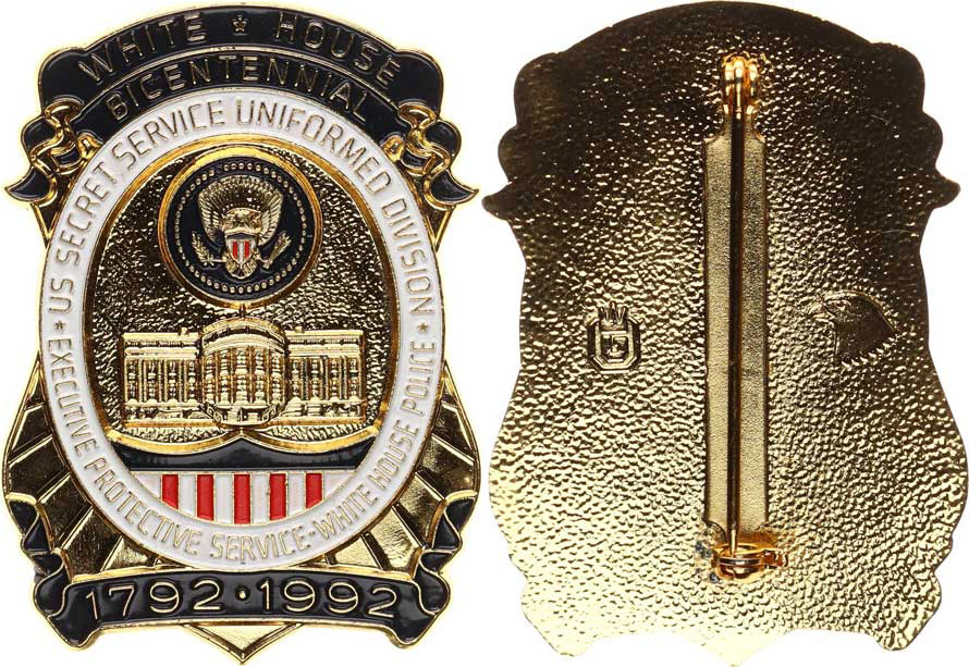 "Bicentennial White House 1792-1992" barevná a zlacený masivní kov 35,5x50 mm szapín. ponka