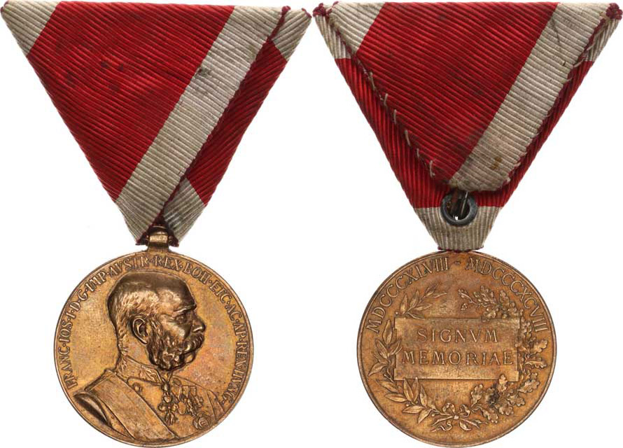Vojenská jubil. pamětní medaile "SIGNVM MEMORIAE" 1898 - bronz na vojenské stuze VM 1-32 A