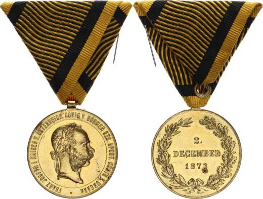 Válečná medaile "2. December 1873" VM 1/28A válcovité ouško, číslice 2 dole vlnitá +stuha