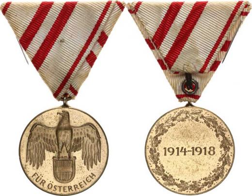 Rakouská pamětní medaile na I. světovou válku 1914-1918 VM 1-52 A; Barac 763