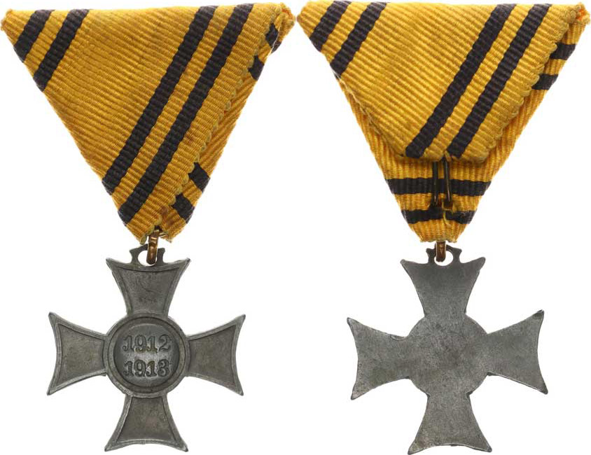 Pamětní kříž 1912/1913 zv."Mobilizační", pozdější typ s letopočty do hloubky VM 2-/13 d zinek (náhradní kov)