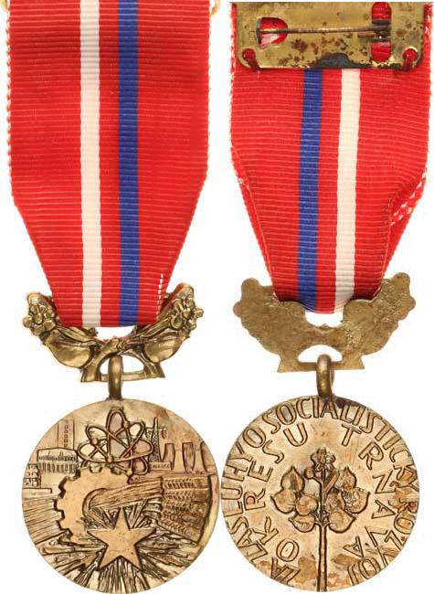 Pamětní medaile "Za zásluhy o socialistický rozvoj okresu Trnava" bronz 31 mm se závěswm a stuhou
