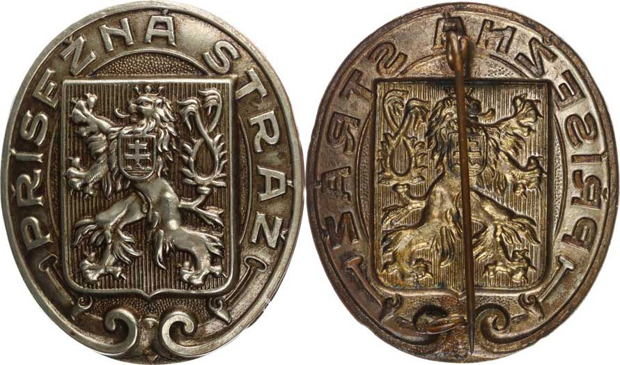Přísežná stráž (po r.1918) lev na štítě, bílý kov 57x65 mm zapínací jehlová sponka