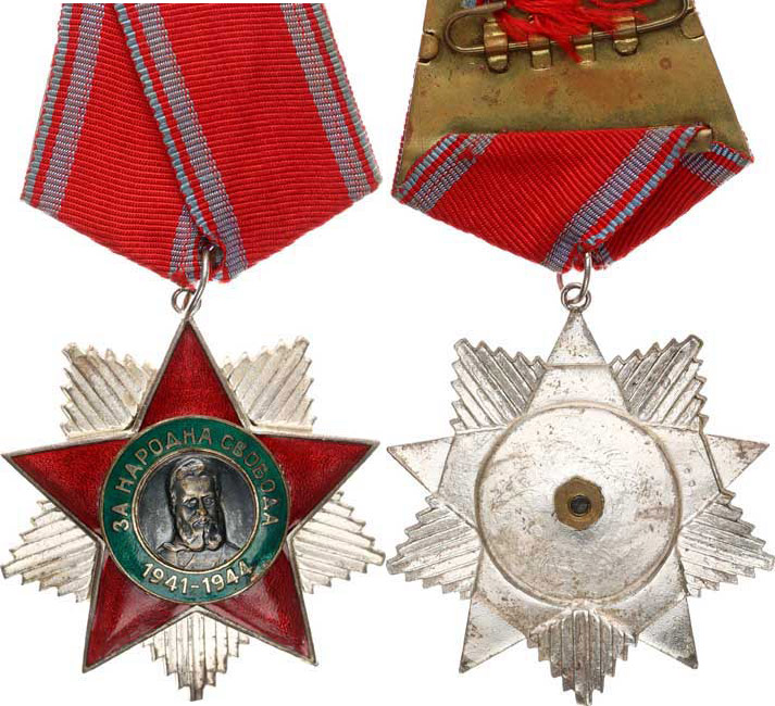 Řád "Za národní svobodu 1941-1944" hvězda - červený a zelený smalt II. třída stuha na kolodce