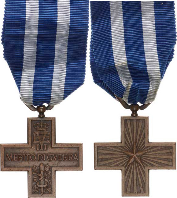 Viktor Emanuel III., Válečný záslužný kříž "MERITO DI GVERRA" typ bez značky Barac 533 var. tmavý bronz