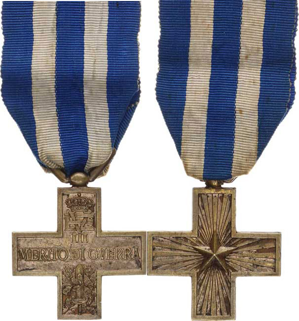 Viktor Emanuel III., Válečný záslužný kříž "MERITO DI GVERRA" typ bez značky Barac 533 var. světlý bronz