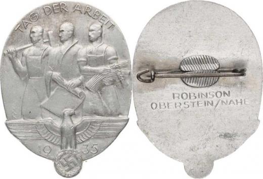 Odznak "Tag der Arbeit - 1935" ražebna: Robinson Oberstein Nahe Al 33x45 mm zapín. sponka