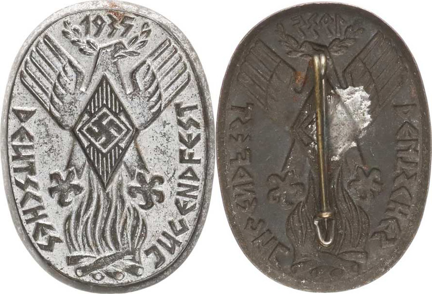Odznak "Deutsche Jugendfest 1935" postř. plech 29x40 mm _ oparv. spona