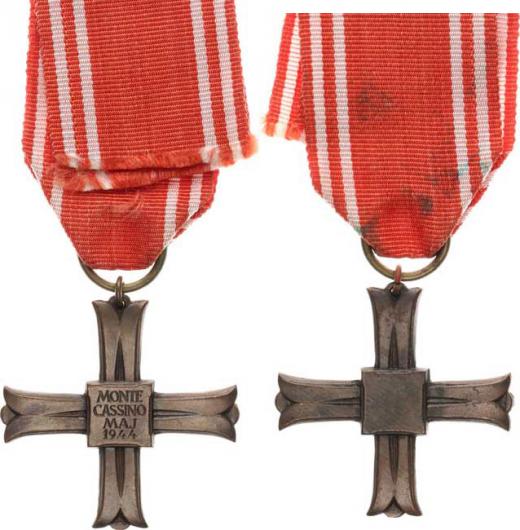 Kříž "MONTE CASSINO MAJ 1944" bronz - bez čísla Barac 96_jiná stuha