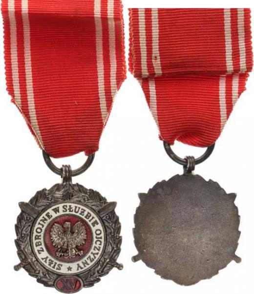 Medaile "SILY ZBROJNE W SLUZBIE OJCZYZNY" XV let služby postříbřená