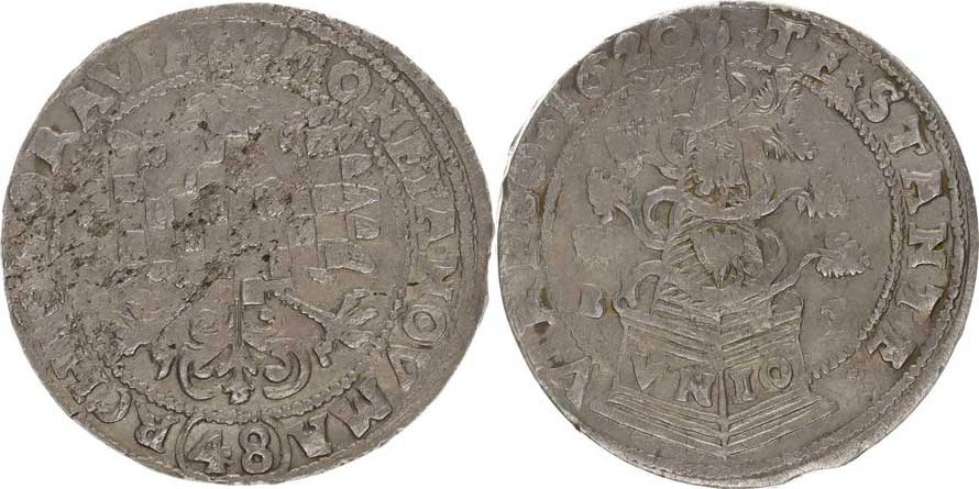 48 kr. 1620 BZ, Olomouc-Zwirner MKČ 610 "RR" 15,228 g _mělká ražba