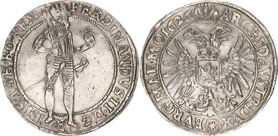 Tolar 1626, K.Hora-Hölzl MKČ 798 var.: MAR. MO - minc. zn. v kroužku, bez tečky před datací / tečka za REX. 28,954 g +starý podložní štítek