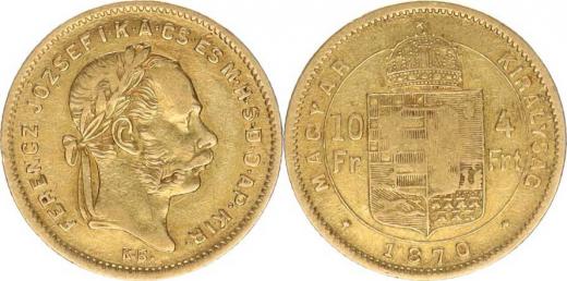 4 Forint = 10 Franken 1870 KB 3,107 g