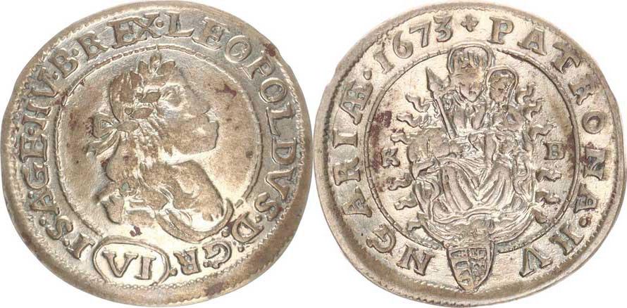 VI kr. 1673 KB var.: výrazně menší poprsí, vpravo i vlevo 3+3 p lameny "R"