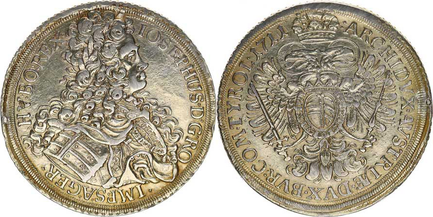 Tolar 1711 M:*.H., Vídeň-Hoffmann 28,722 g CNA 148-a-7 _mírně zlaceen, dr. hr.