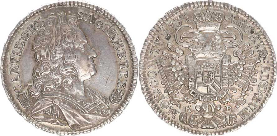 1/2 Tolar 1735 KB Husz. 1613 var.: dvojrečka za CAR : 14,371 g_dr. škr.