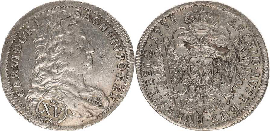 XV kr. 1735 b.zn., Vratislav MKČ 1914 "R" 6,164 g _dr. vada stř.