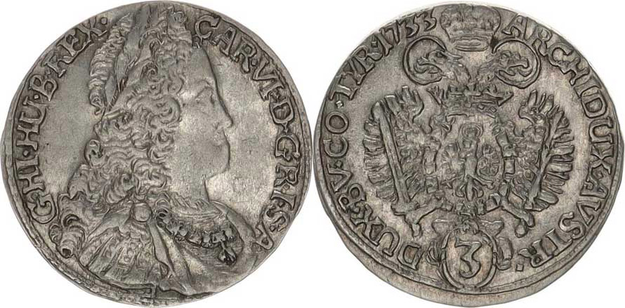 3 kr. 1733, Tyroly, Hall