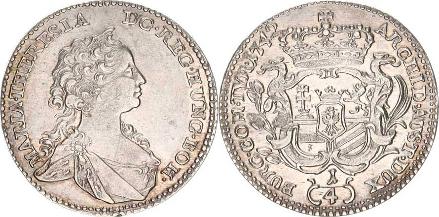 1/4 Tolar 1742 b.zn., Tyroly Hall "R" 7,24 g