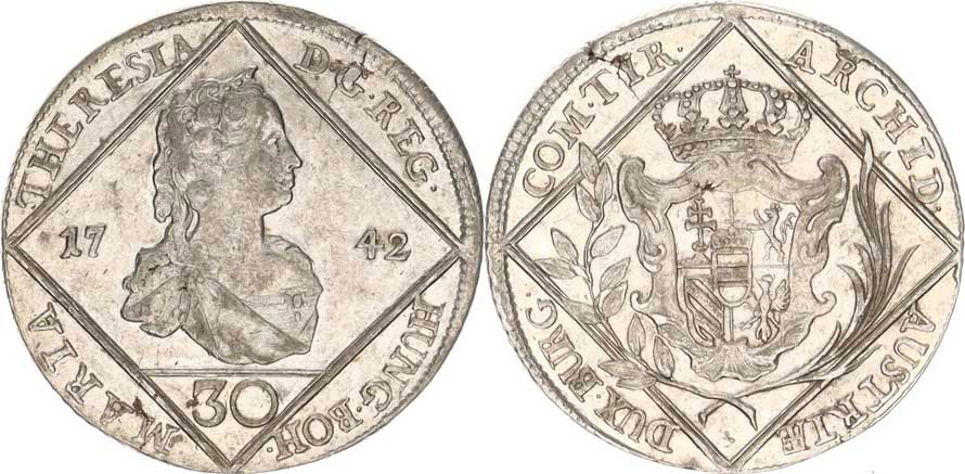30 kr. 1742 b.zn., Vídeň Her. 758; Eyp. 20 7,148 g