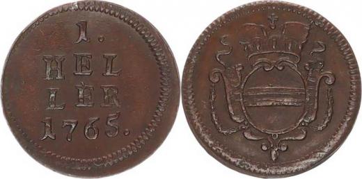 1 Heller 1765 b.zn., Vídeň - nový typ "HELLER" Nov. 2