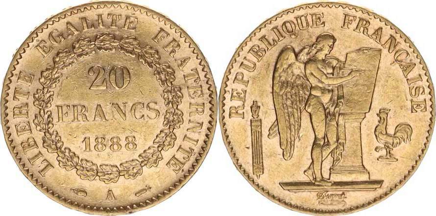 20 Francs 1898 A, Paříž KM 825 "R" (jen 28 000 ks) 6,392 g