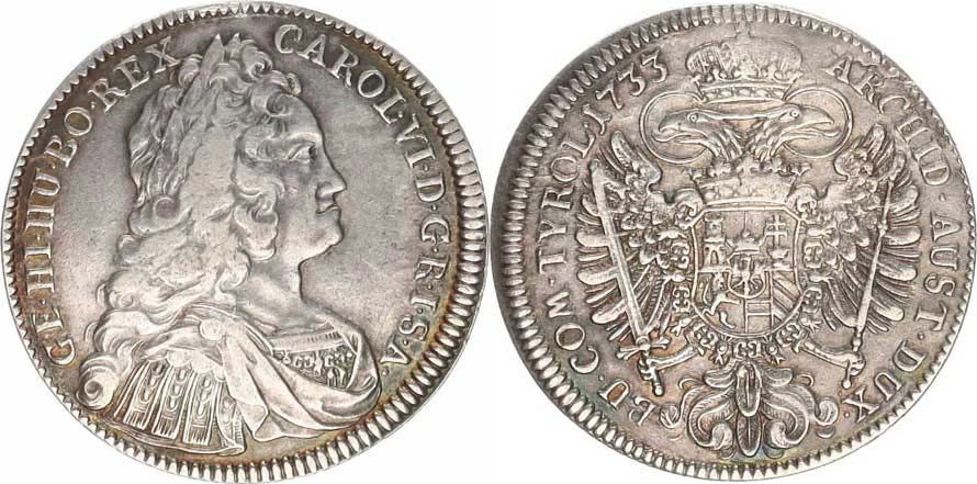 1/2 Tolar 1733, Tyroly Hall_hr., tém.
