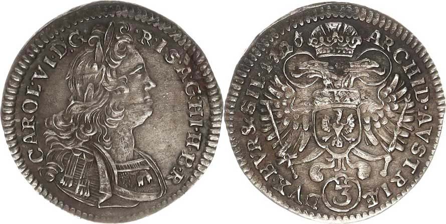 3 kr. 1728 b.zn., Vratislav MKČ 1931 "R" 1,52 g "pěkná patina"