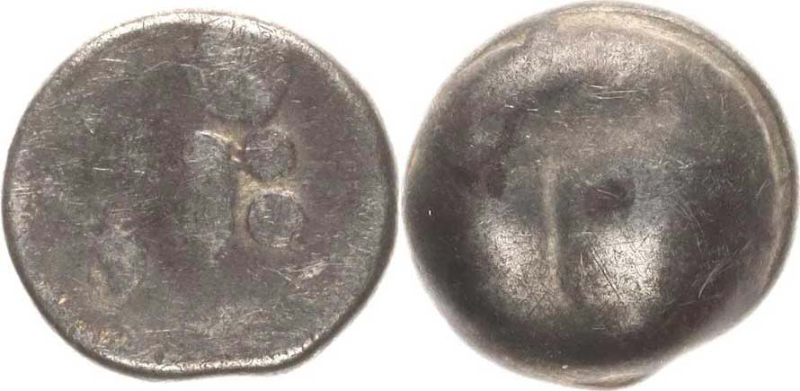 Statér, stylizovaná postava z kuliček / dva oblé hrboly 18,6 mm 10,112 g
