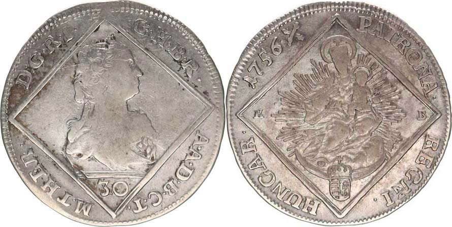 30 kr. 1756 K-B, Kremnica "R" Her. 813; Eyp. 266 _dr. stopa po oušku