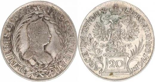 20 kr. 1761 b.zn., Tyroly Hall "R"