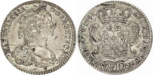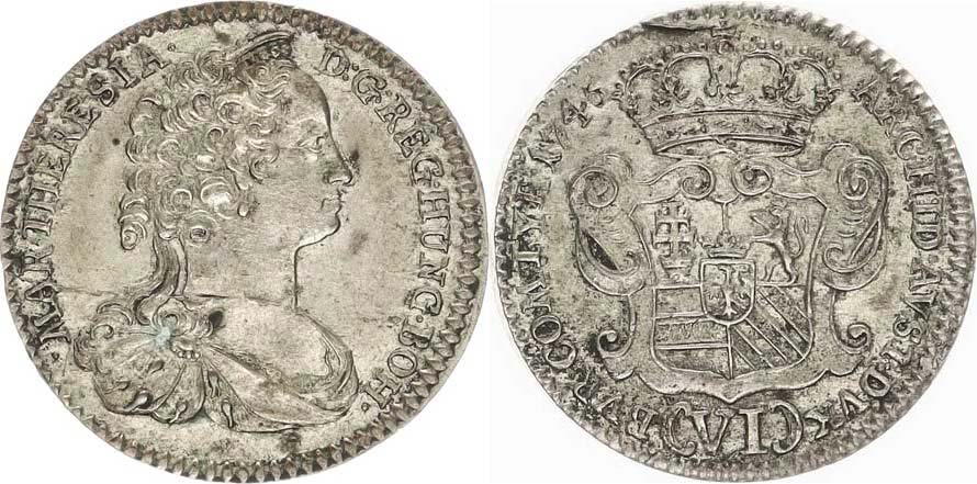 VI kr. 1745 b.zn., Tyroly Hall +starý podložní štítek