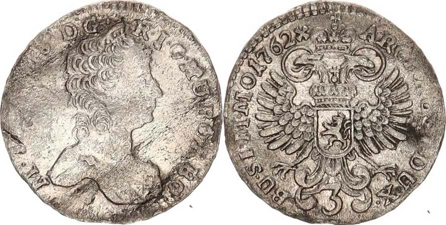 3 kr. 1762 b.zn., Praha-Erdmann "R" 1,501 g _část. nedor. opis