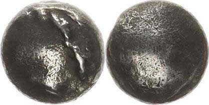 Ag obol, 7 mm 0,802 g - stylizovaná hlava / hladký hrbol