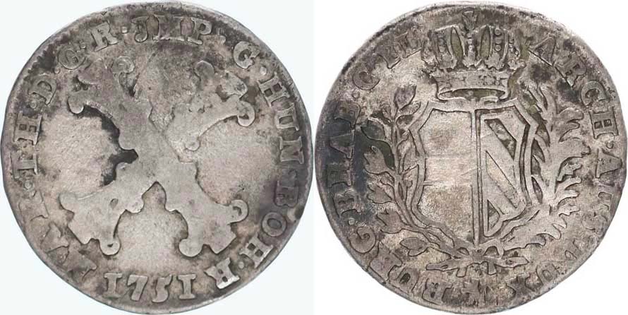 5 Sols (20 Liards) 1751 zn.lev, Bruggy_tmavé patin. skvr.
