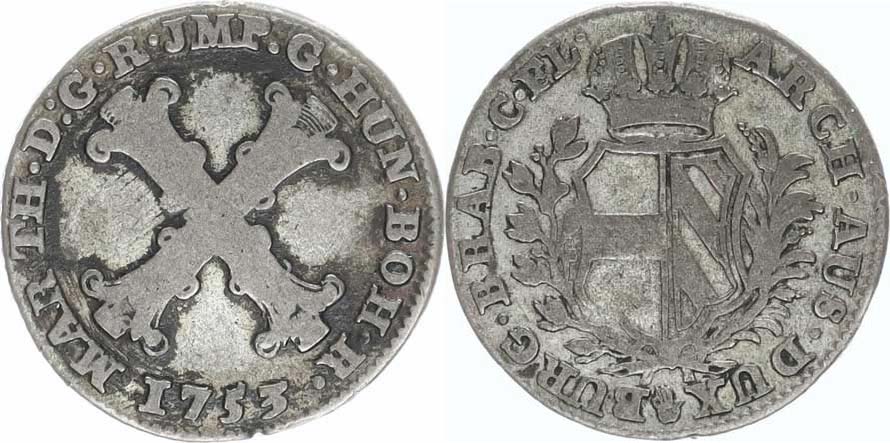 5 Sols (20 Liards) 1753 zn. ruka, Antverpy
