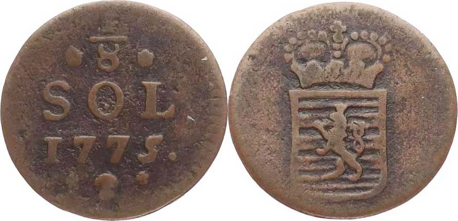 1/8 Sol 1775 zn.hlava, pro Lucembursko var.: v písmenu O (SOL) j e tečka "RR"