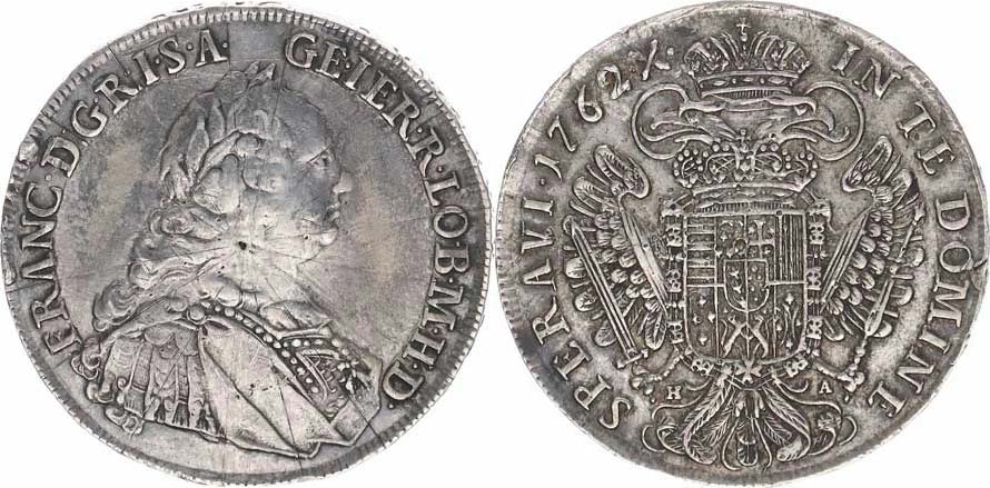 1/2 Tolar 1762 H-A, Tyroly, Hall "R"_dr. hranky, rys. v Av