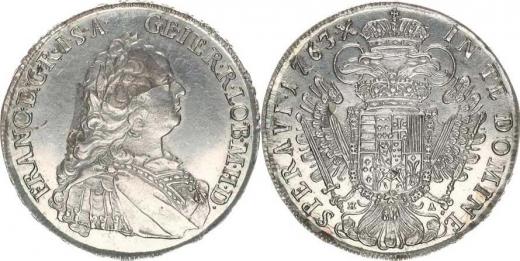 1/2 Tolar 1763 H-A, Tyroly, Hall "R" Her. 203 "špičkový stav"